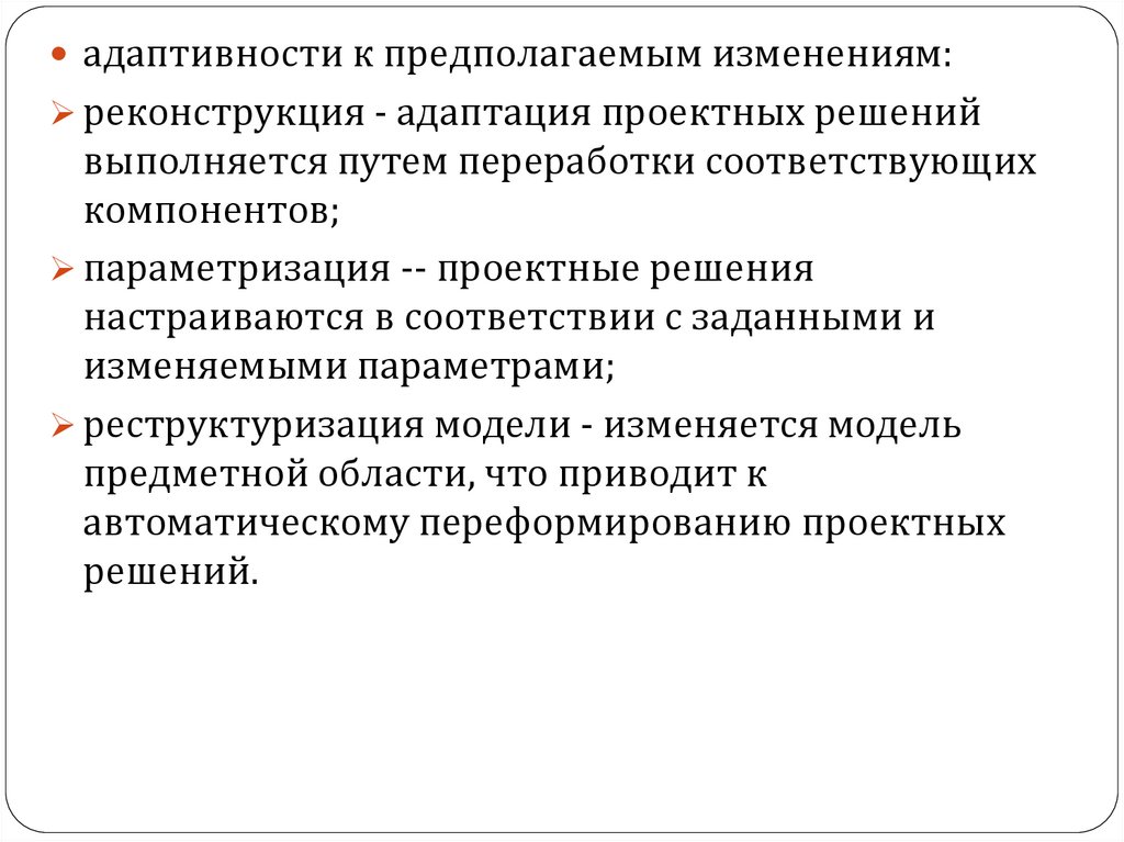 адаптивности к предполагаемым изменениям:реконструкция - адаптация проектных решений