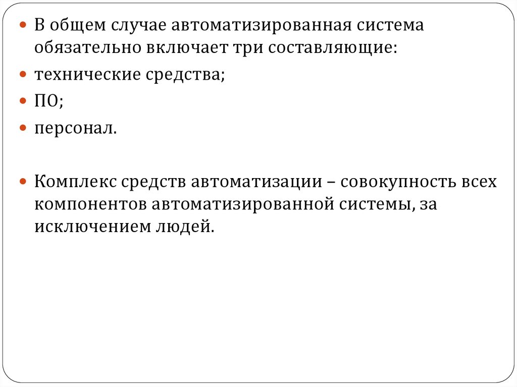 В общем случае автоматизированная системаобязательно включает три составляющие: