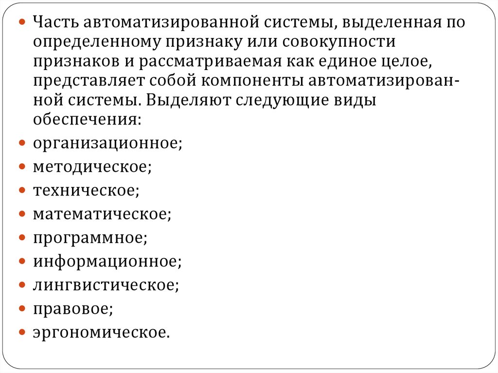 представляет собой компоненты автоматизированной системы. Выделяют следующие виды