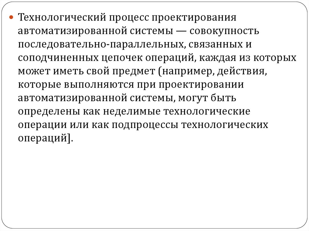 Технологический процесс проектированияавтоматизированной системы — совокупность