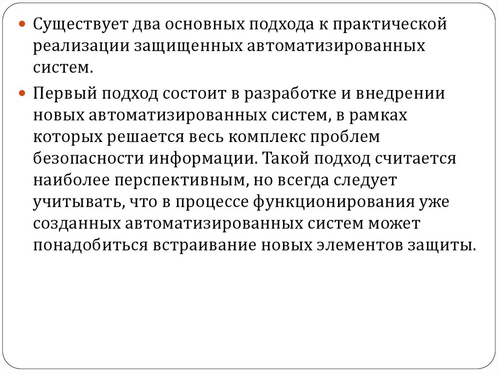 Существует два основных подхода к практическойреализации защищенных автоматизированных