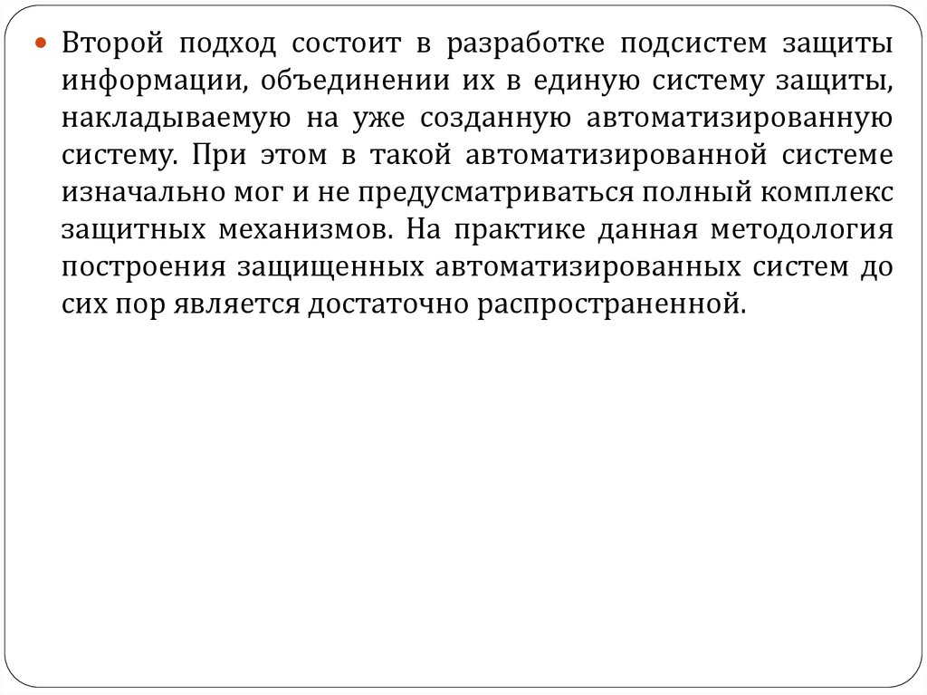 Второй подход состоит в разработке подсистем защитыинформации, объединении их в единую систему защиты,
