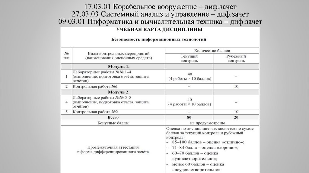 17.03.01 Корабельное вооружение – диф.зачет27.03.03 Системный анализ и управление – диф.зачет