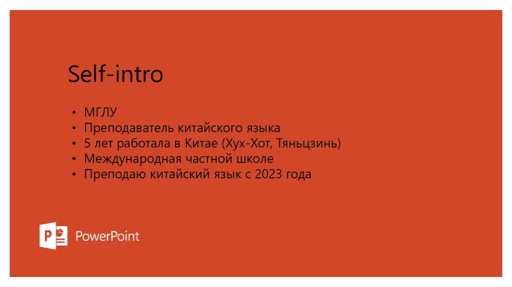 • 5 лет работала в Китае (Хух-Хот, Тяньцзинь)