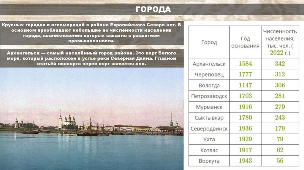 ГОРОДАКрупных городов и агломераций в районе Европейского Севера нет. В