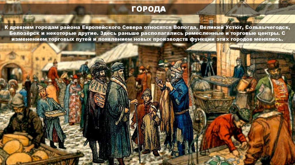 ГОРОДАК древним городам района Европейского Севера относятся Вологда, Великий Устюг, Сольвычегодск,