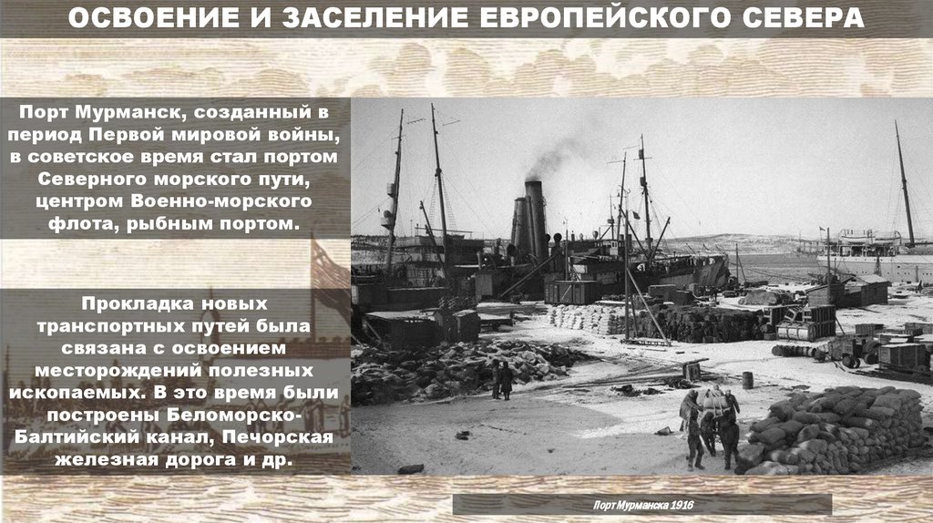 ОСВОЕНИЕ И ЗАСЕЛЕНИЕ ЕВРОПЕЙСКОГО СЕВЕРАПорт Мурманск, созданный в