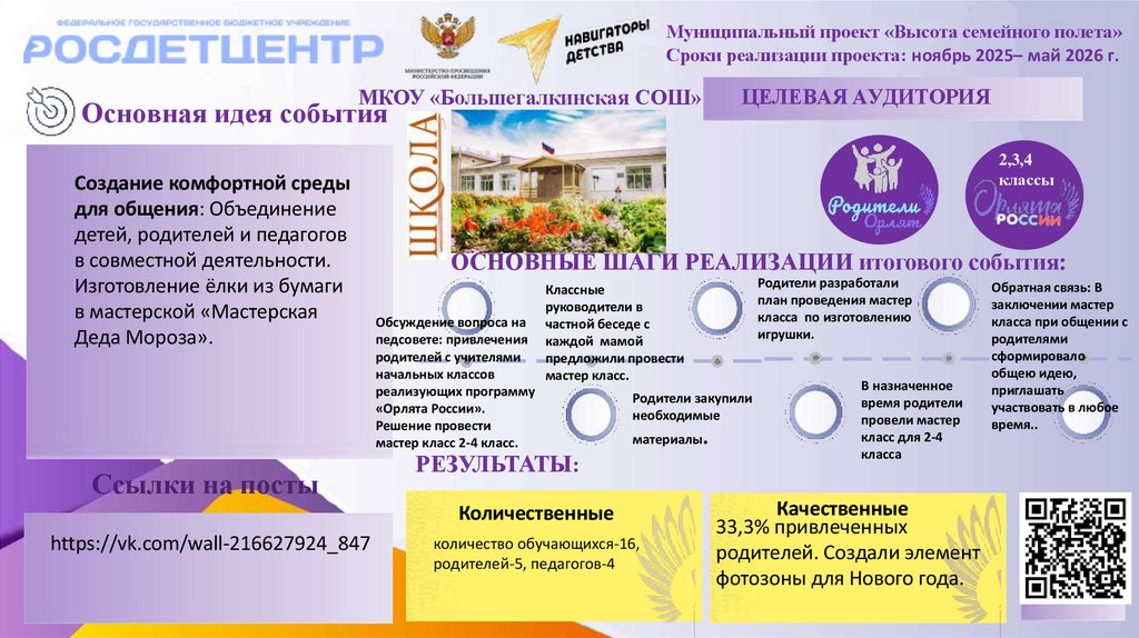 Муниципальный проект «Высота семейного полета»Сроки реализации проекта: ноябрь 2025– май 2026 г.