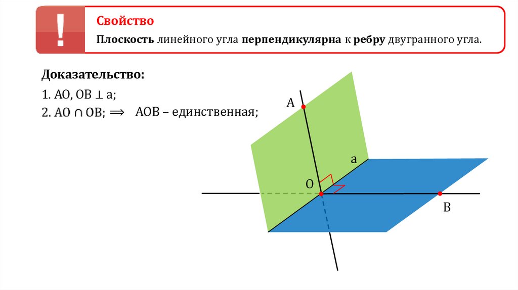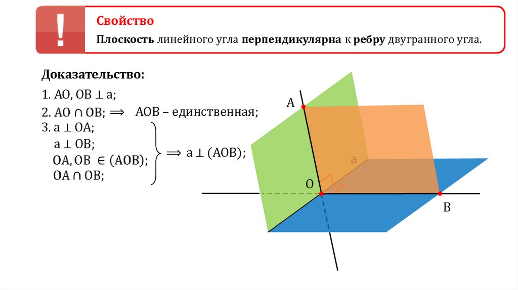 СвойствоПлоскость линейного угла перпендикулярна к ребру