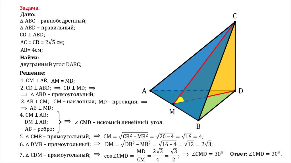 3. AB ⊥ CM; CM – наклонная; MD – проекция; ⟹