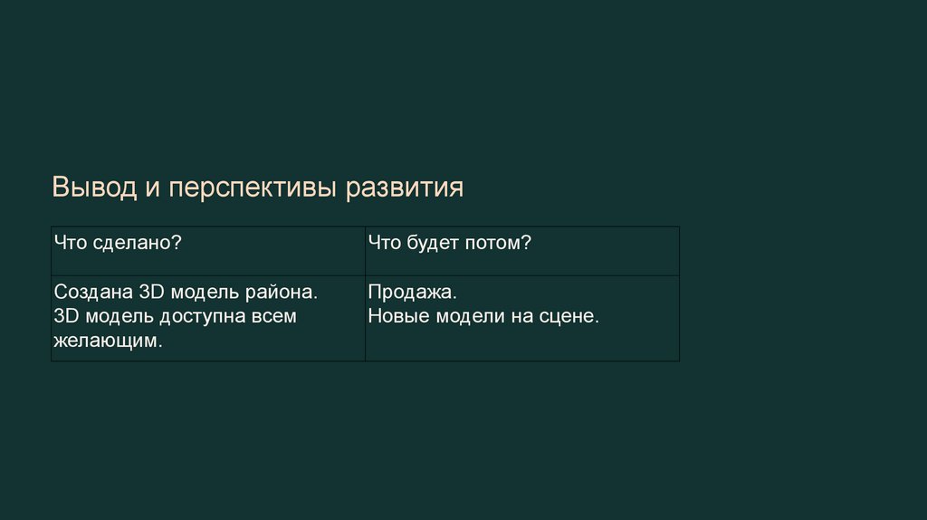 Вывод и перспективы развитияЧто сделано?