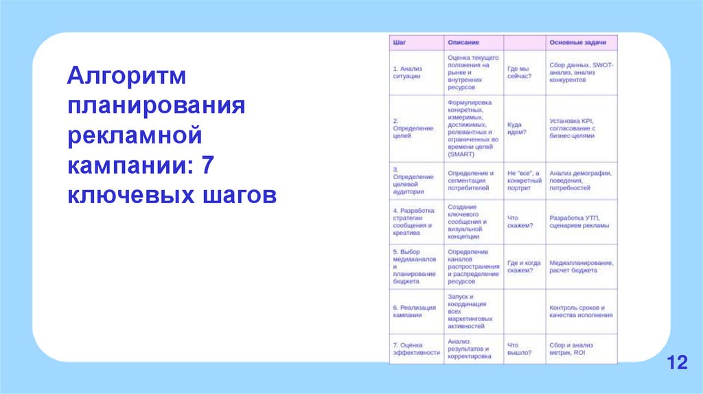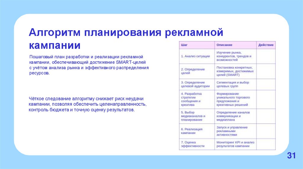 План рекламной кампании — это алгоритм, а не творческий хаос.Взаимосвязь этапов планирования
