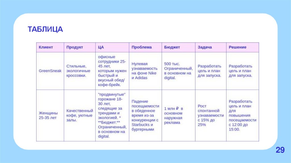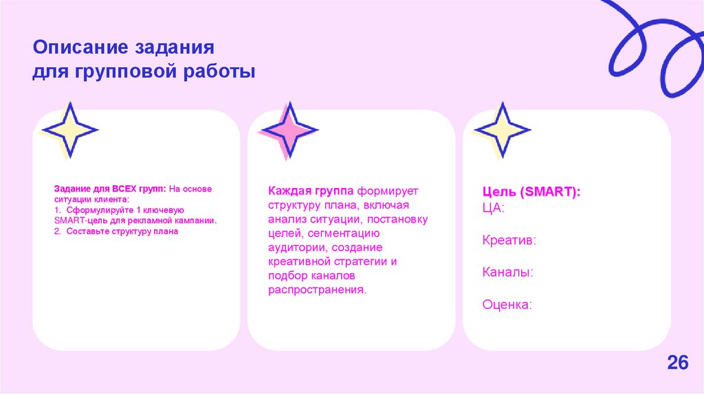 (видео, баннер, пост) и предположить, какую SMART-цель