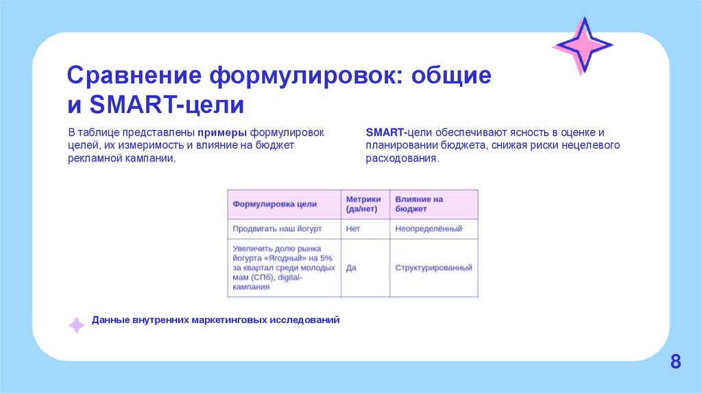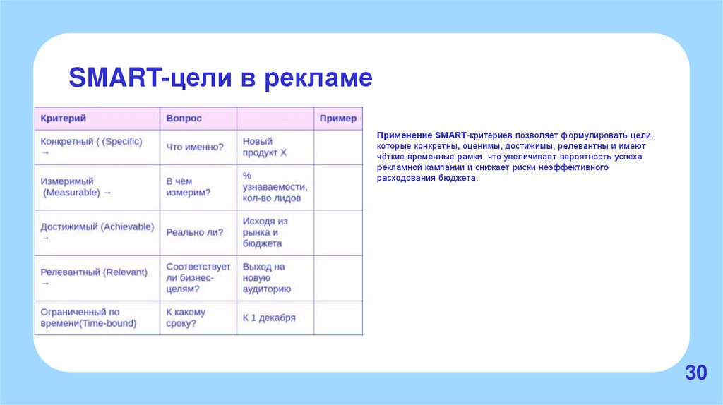 SMART-цели в рекламеПрименение SMART-критериев позволяет формулировать цели,