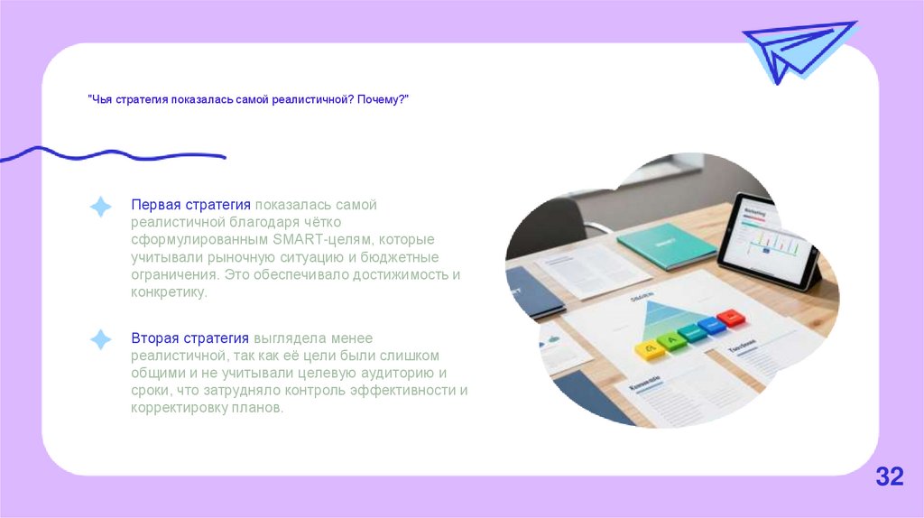 "Чья стратегия показалась самой реалистичной? Почему?"Первая стратегия показалась самой