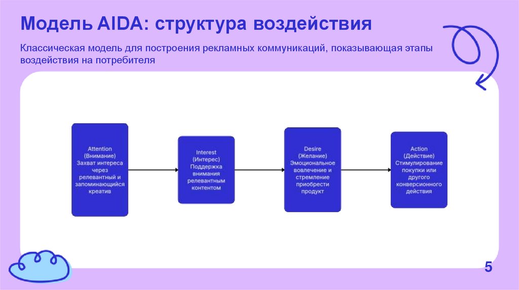 Модель AIDA: структура воздействияКлассическая модель для построения рекламных коммуникаций, показывающая этапы