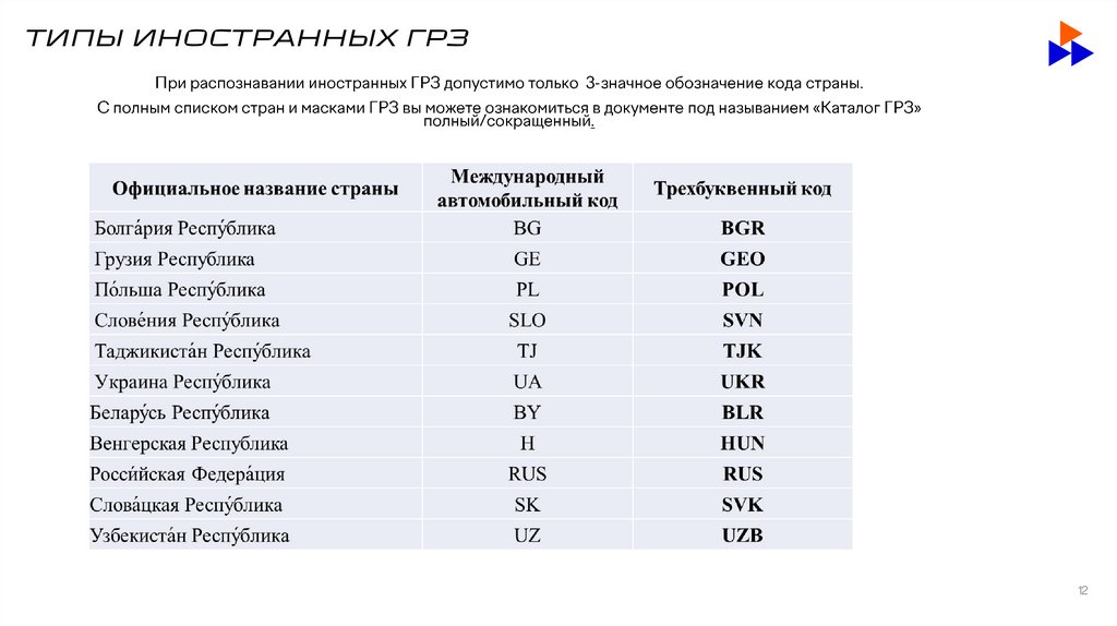 ТИПЫ ИНОСТРАННЫХ ГРЗ.