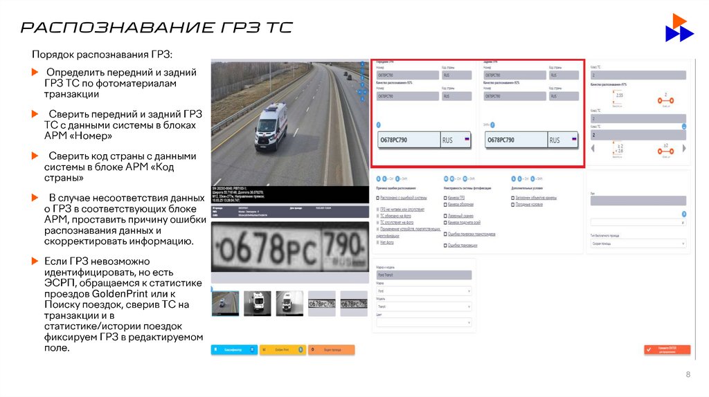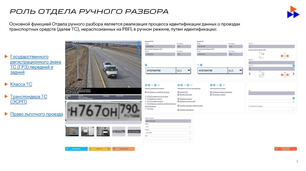 Фиксация причин ошибок распознавания и неисправностейсистемы фотофиксации.