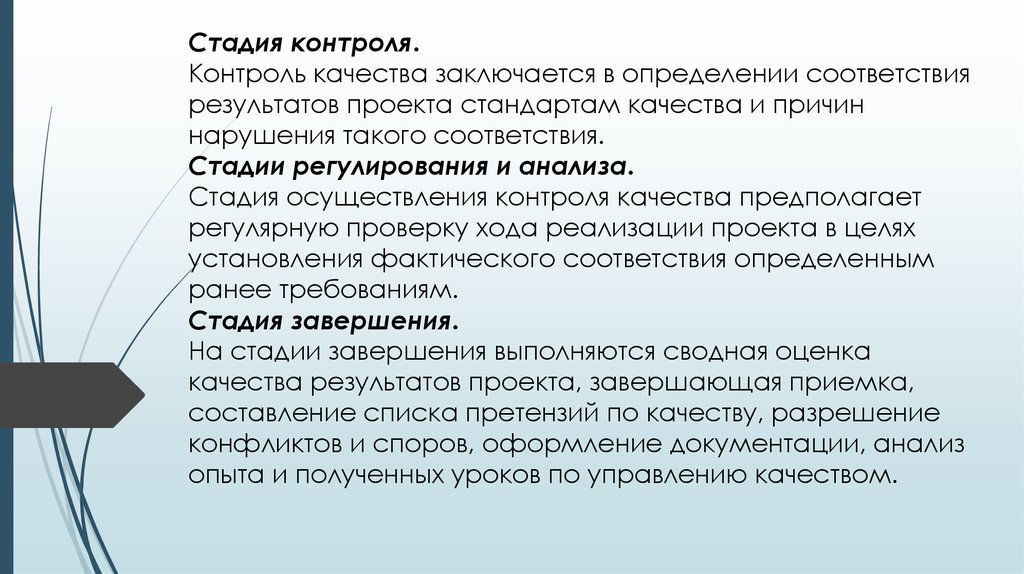 Стадия контроля.Контроль качества заключается в определении соответствия