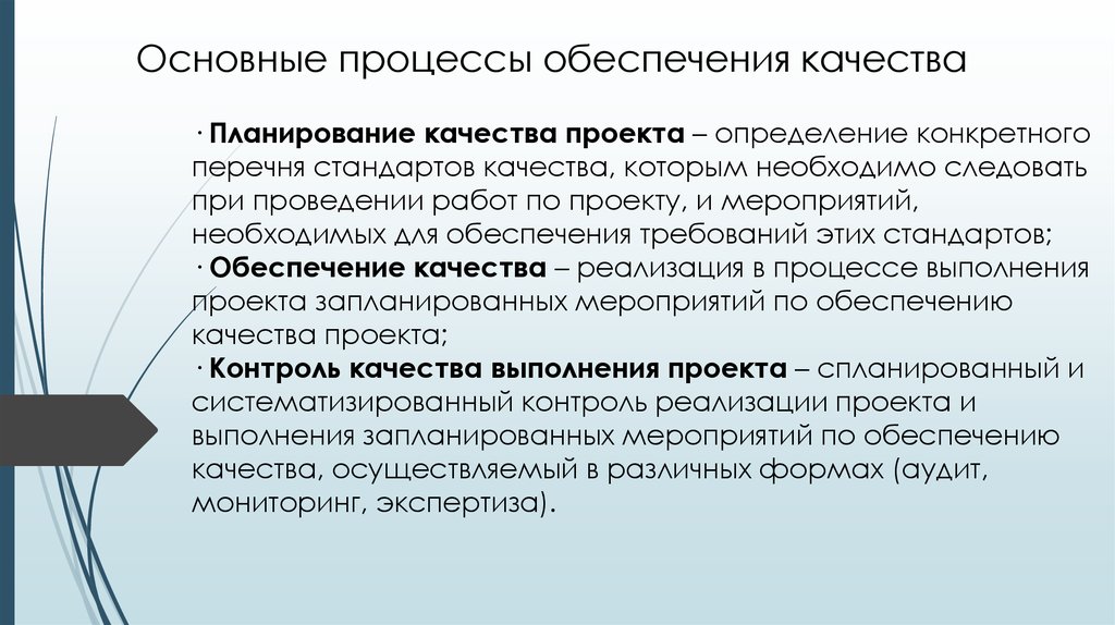 Основные процессы обеспечения качества· Планирование качества проекта – определение конкретного