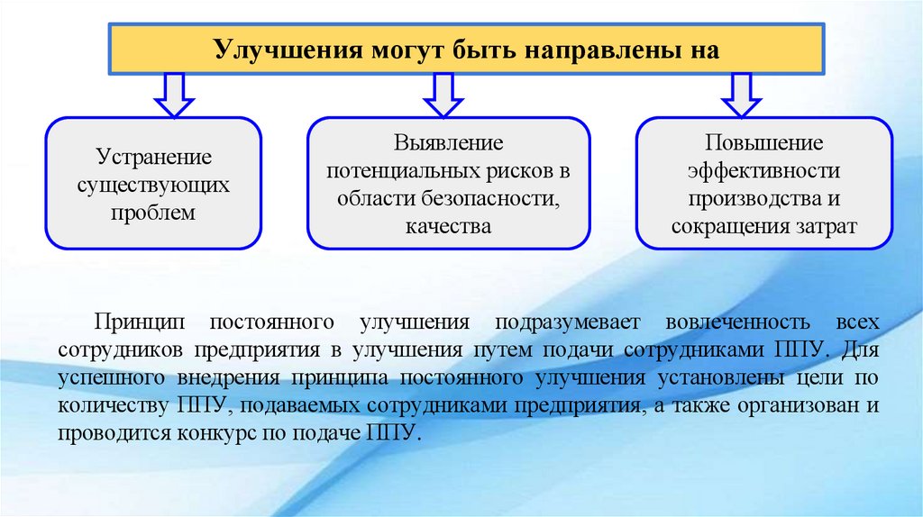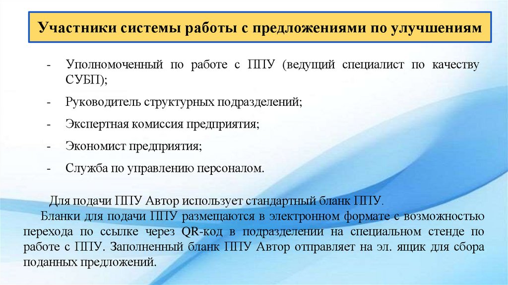 сотрудников предприятия в улучшения путем подачи сотрудниками ППУ. Для