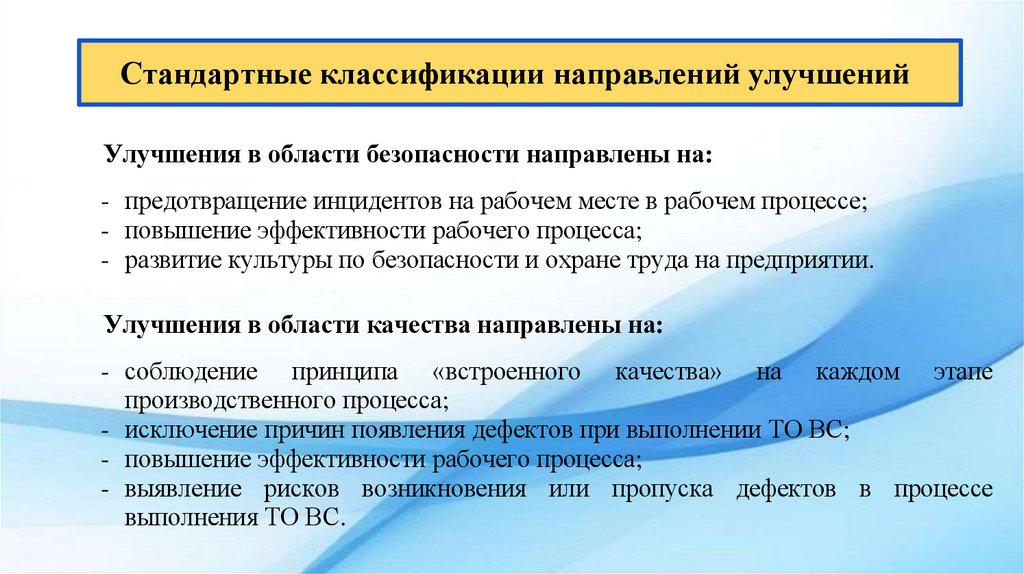 Стандартные классификации направлений улучшенийУлучшения в области безопасности направлены на: