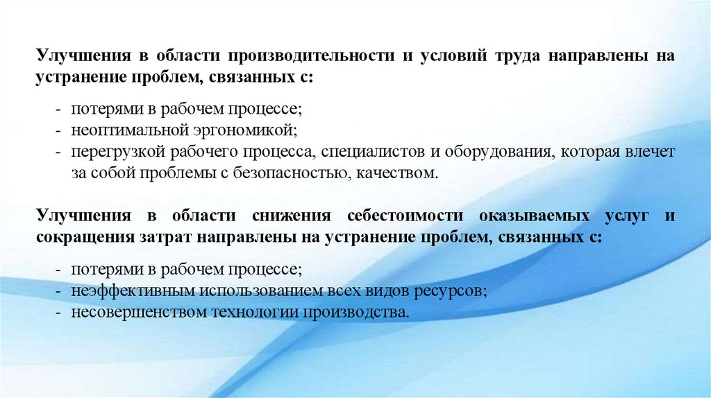 Улучшения в области снижения себестоимости оказываемых услуг и