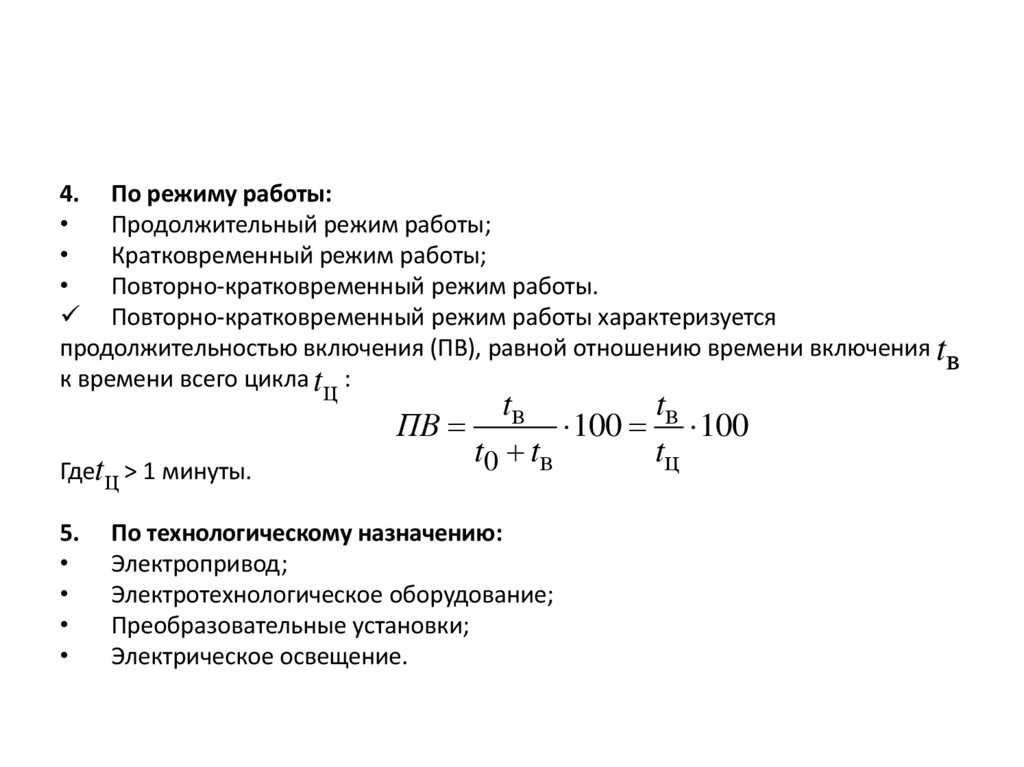 таким параметрам режима относятся следующие