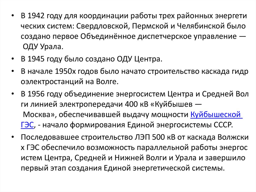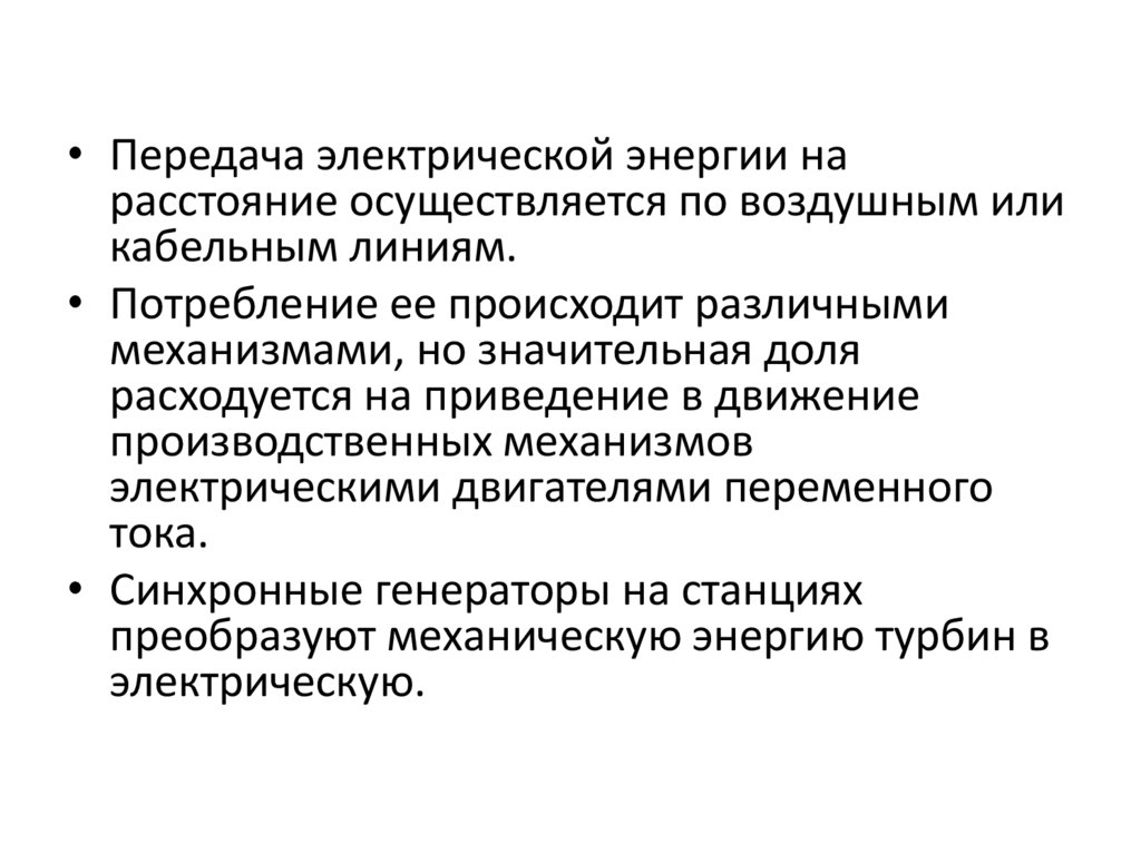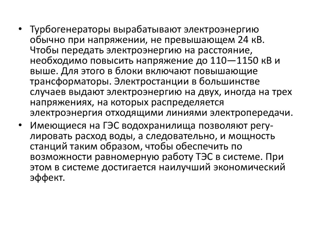 • Электрическая энергия, вырабатываемая на двухэлектростанциях различных типов, подводится к