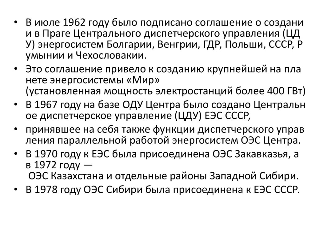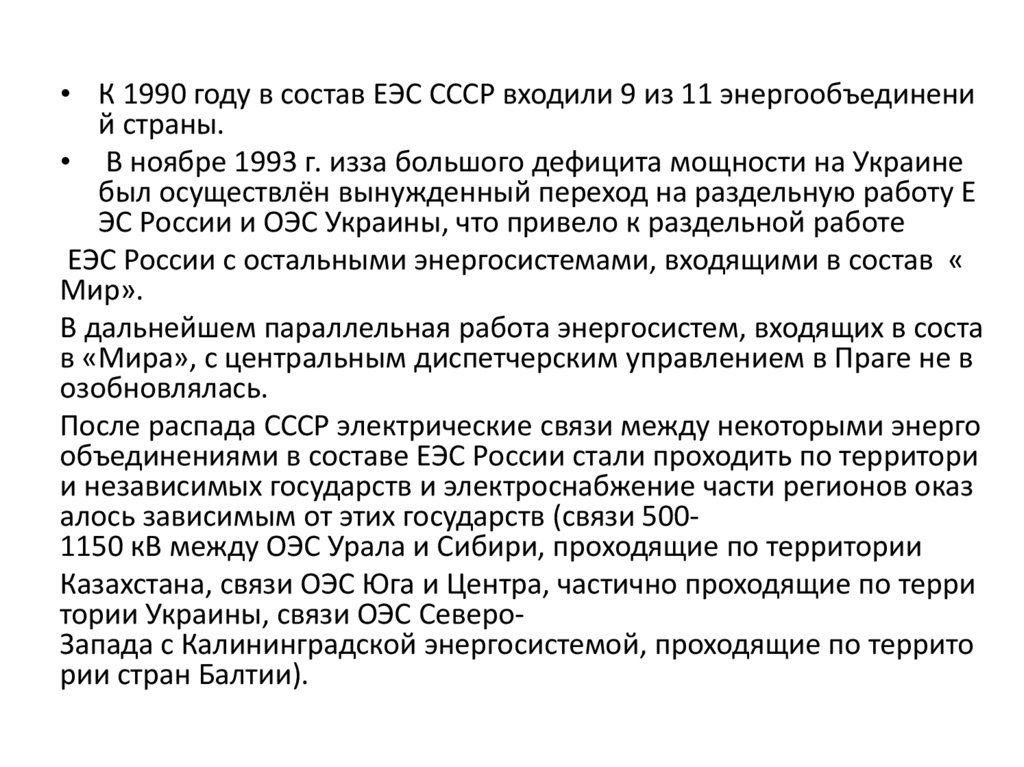 • Сетевое хозяйство ЕЭС России насчитывает более 10 700 линий