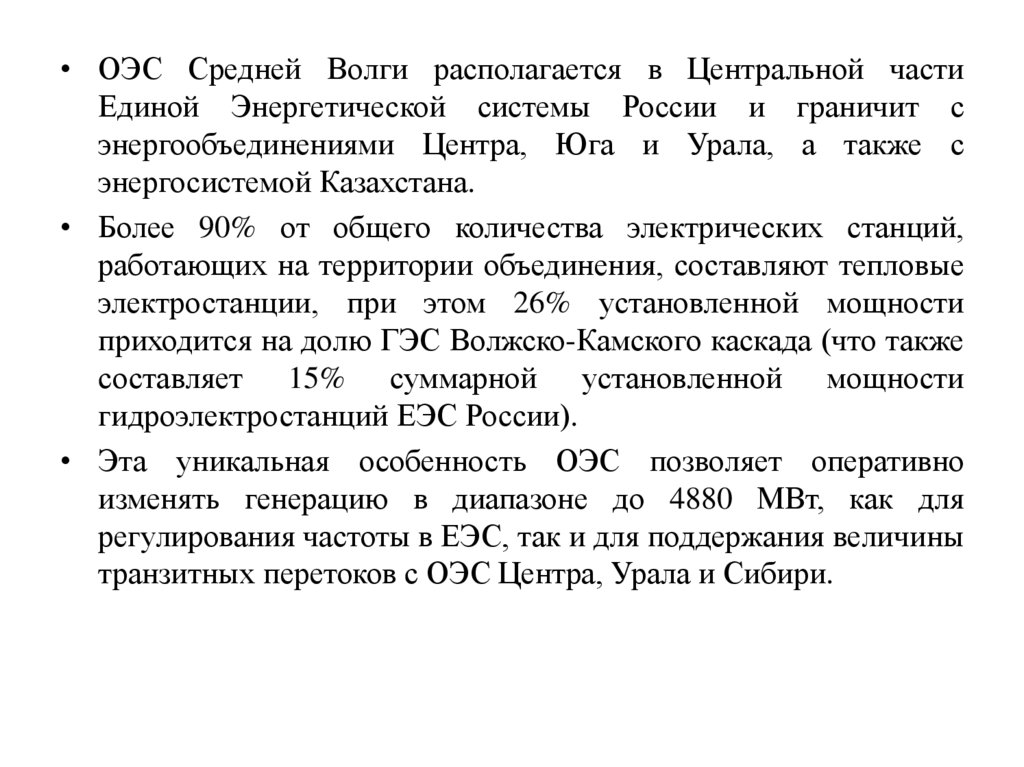 • ОЭС Средней Волги располагается в Центральной частиЕдиной Энергетической системы России и граничит с