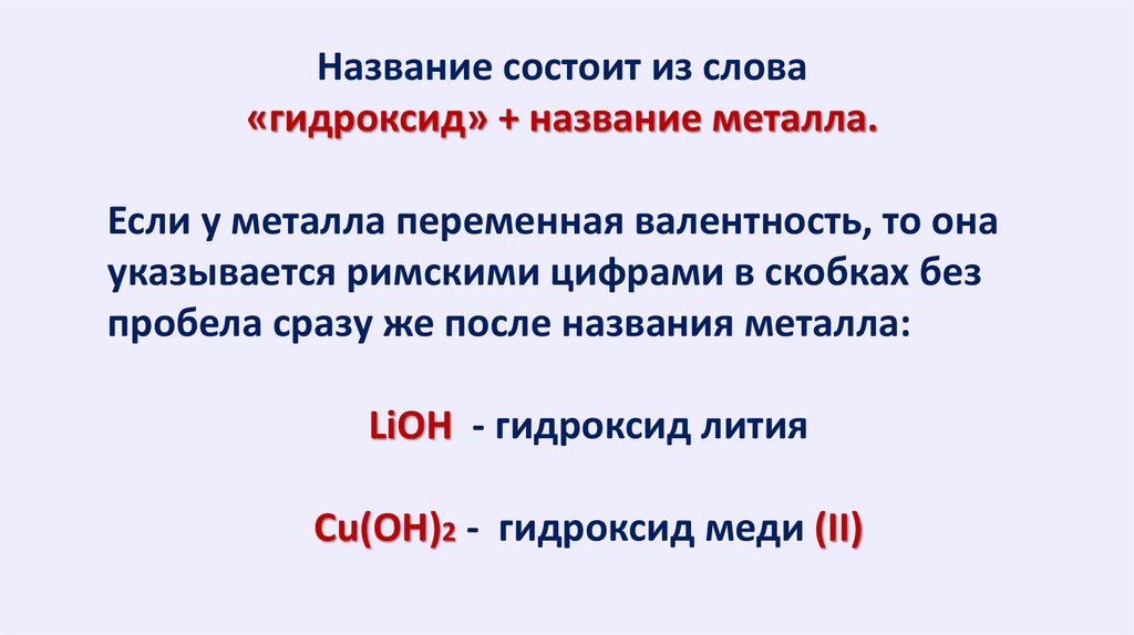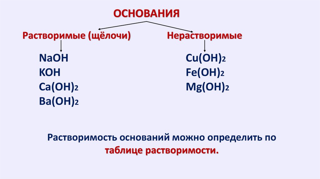 Основания – это сложные вещества, состоящие изатомов металла и одной или нескольких гидроксогрупп –