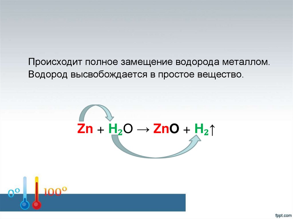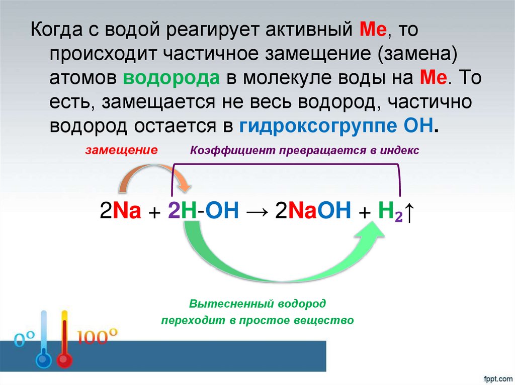 Когда с водой реагирует активный Ме, топроисходит частичное замещение (замена)