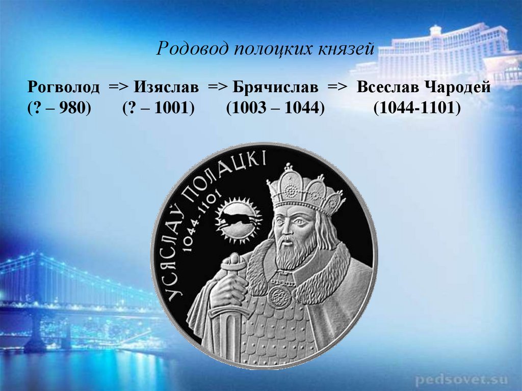 Родовод полоцких князейРогволод => Изяслав => Брячислав => Всеслав Чародей