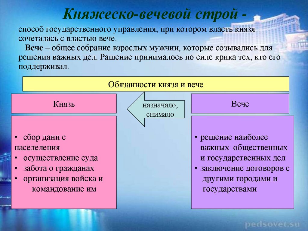 Княжеско-вечевой строй способ государственного управления, при котором власть князясочеталась с властью вече.