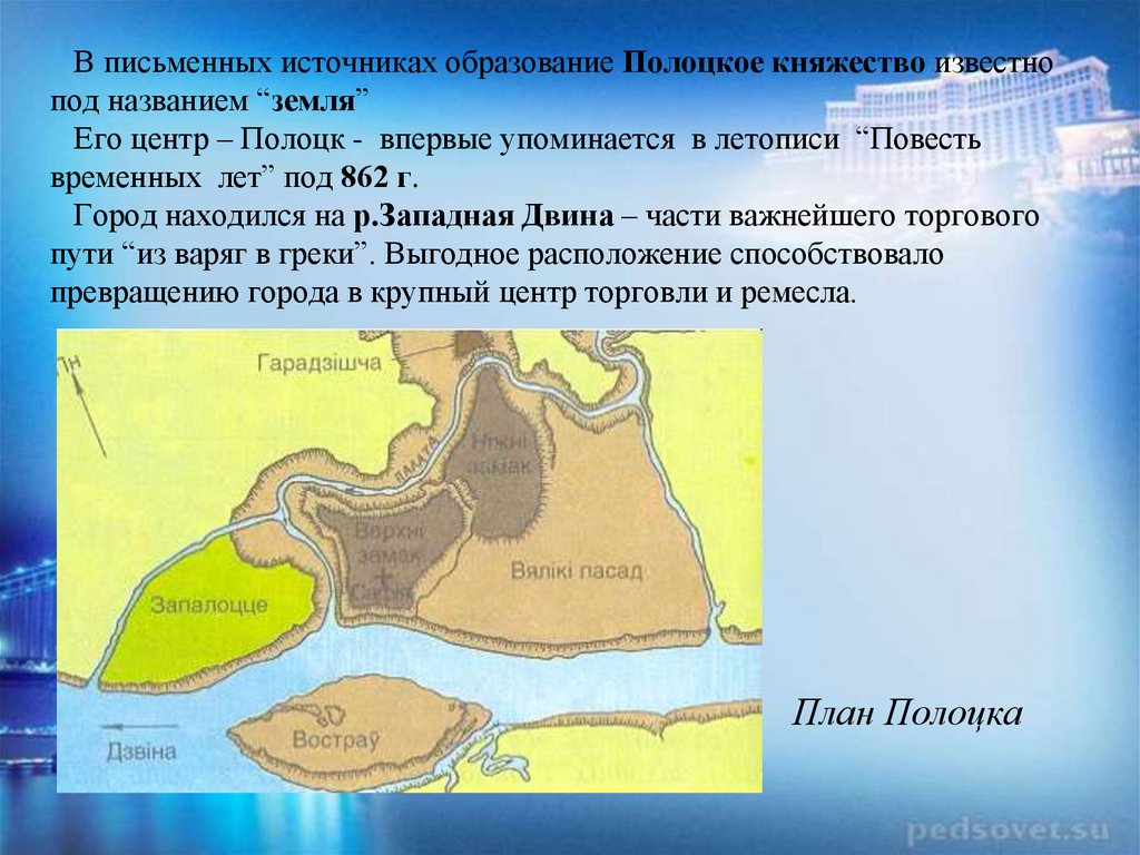 Его центр – Полоцк - впервые упоминается в летописи “Повесть
