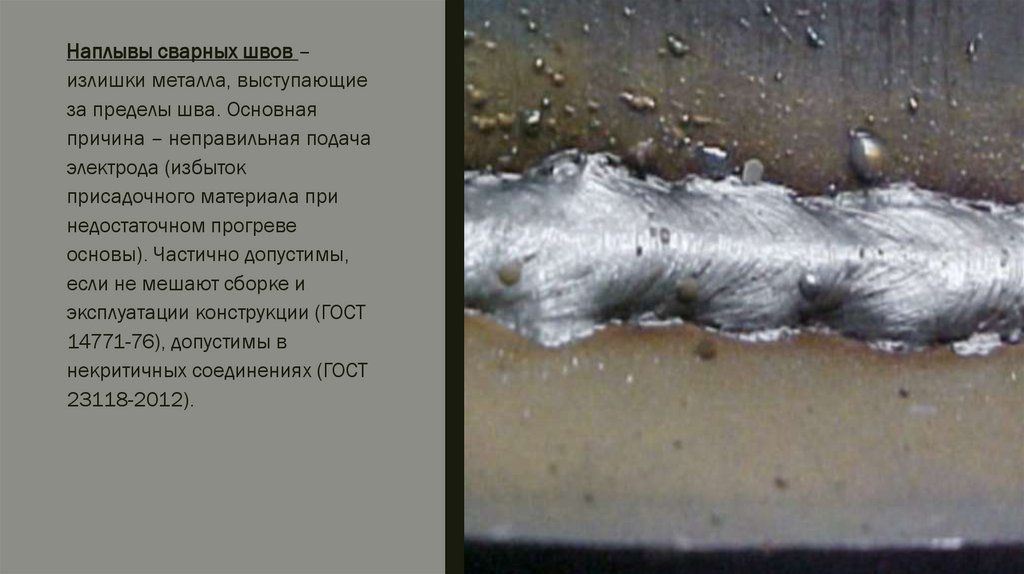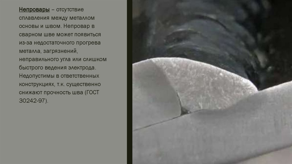 КАЧЕСТВО СВАРКИ И СВАРНЫХ ШВОВ РЕГЛАМЕНТИРУЮТСЯ СПЕЦИАЛЬНЫМИТРЕБОВАНИЯМИ И СТАНДАРТАМИ, НАПРИМЕР, ГОСТ 30242-97 «ДЕФЕКТЫ СОЕДИНЕНИЙ ПРИ