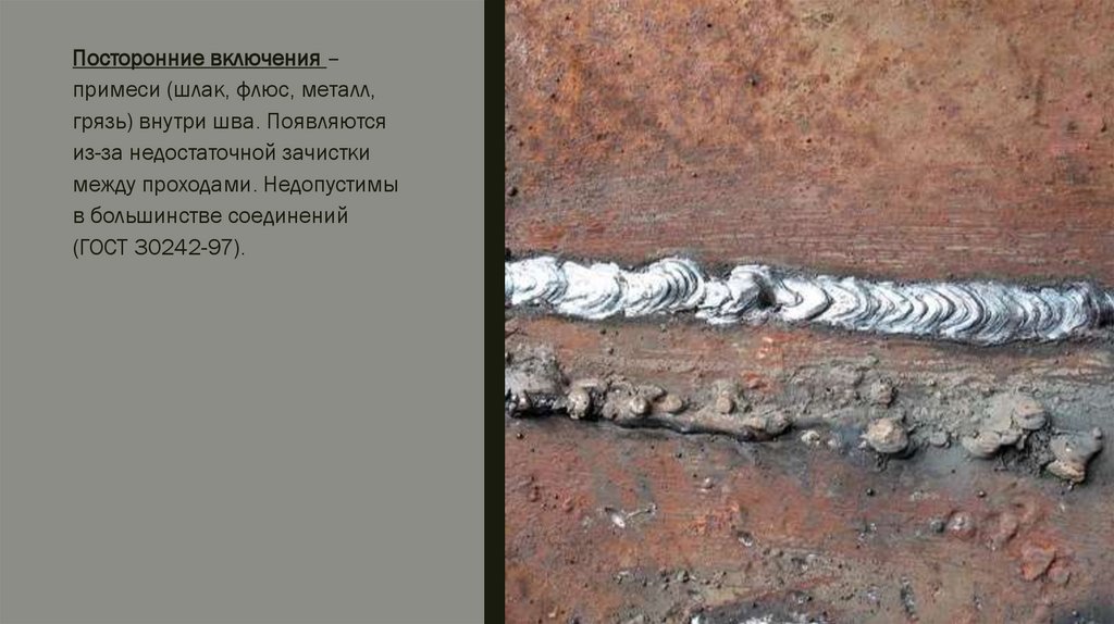 посторонние включения – наличие в структуре шва примесей шлака, грязи и т.д.