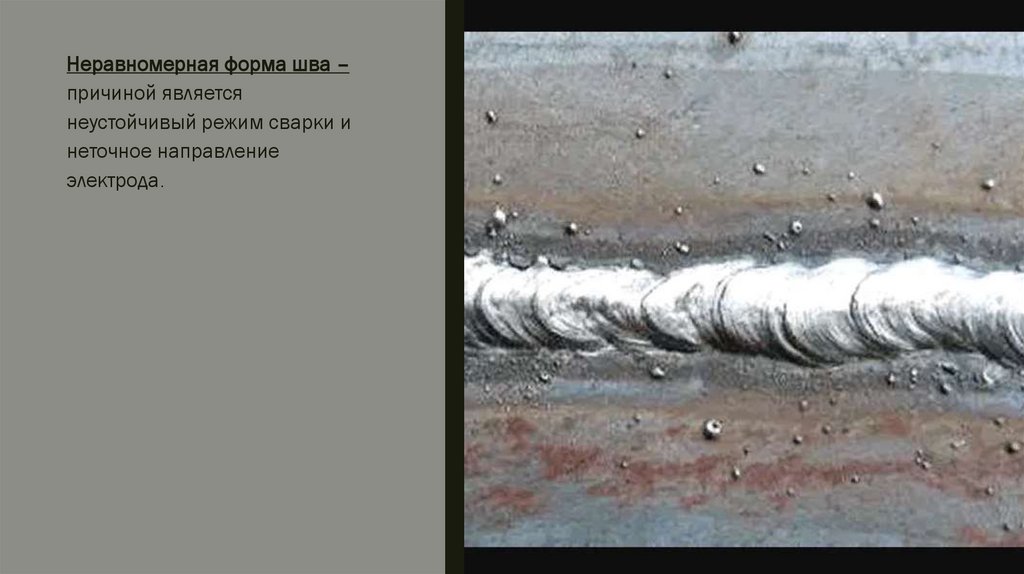 подачи электрода или защитного газа, или неподходящий электрический ток