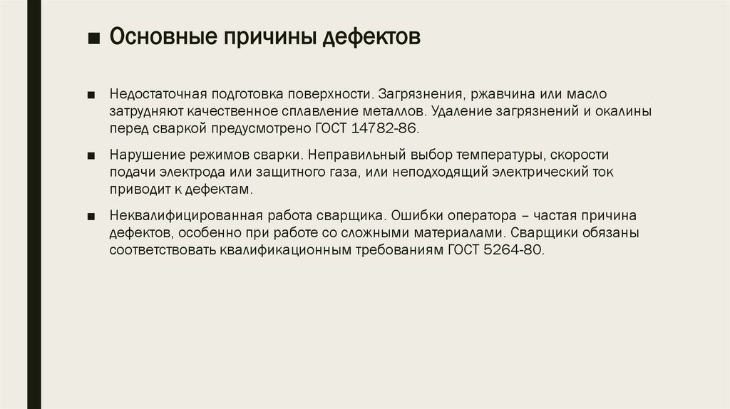 ■ Основные причины дефектов■ Недостаточная подготовка поверхности. Загрязнения, ржавчина или масло
