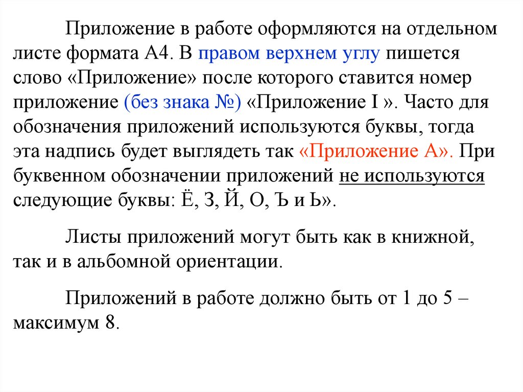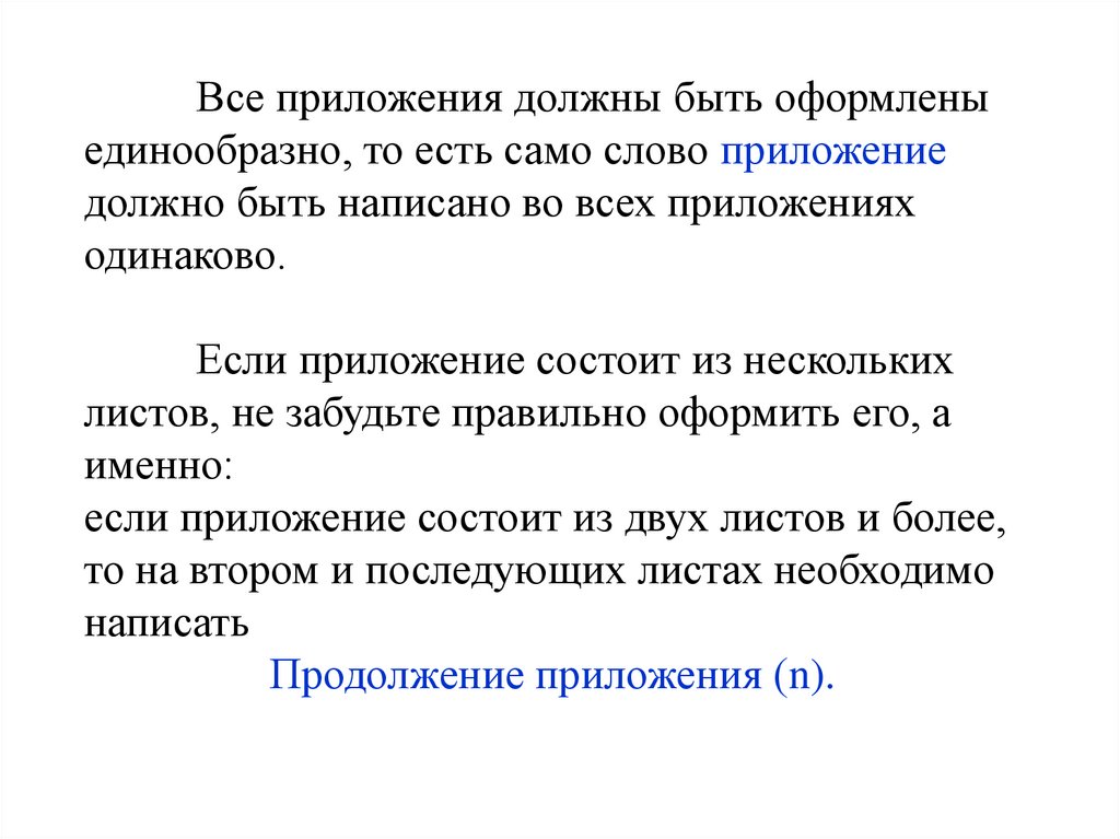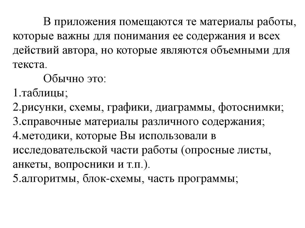 В приложения помещаются те материалы работы,которые важны для понимания ее содержания и всех
