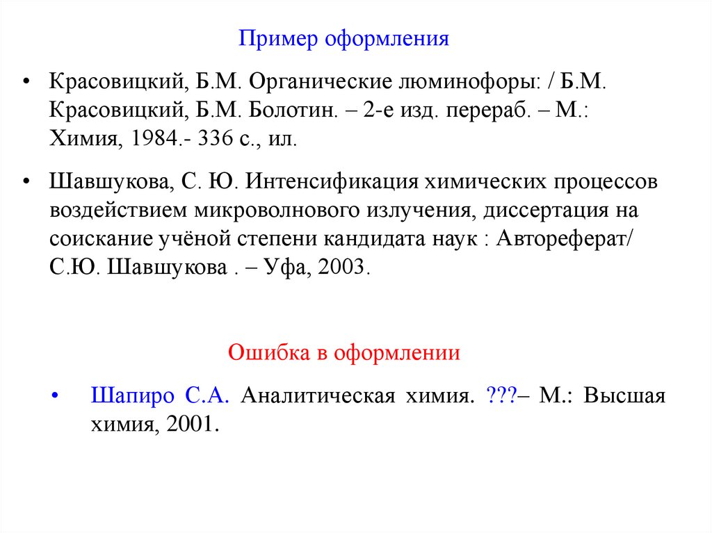 Пример оформления• Красовицкий, Б.М. Органические люминофоры: / Б.М.