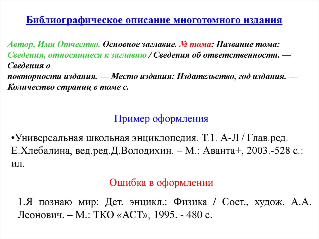 Библиографическое описание многотомного изданияАвтор, Имя Отчество. Основное заглавие. № тома: Название тома: