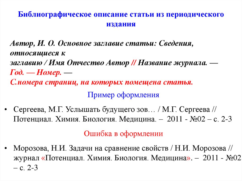 Автор, И. О. Основное заглавие статьи: Сведения,