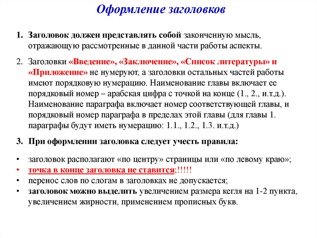 2. Заголовки «Введение», «Заключение», «Список литературы» и