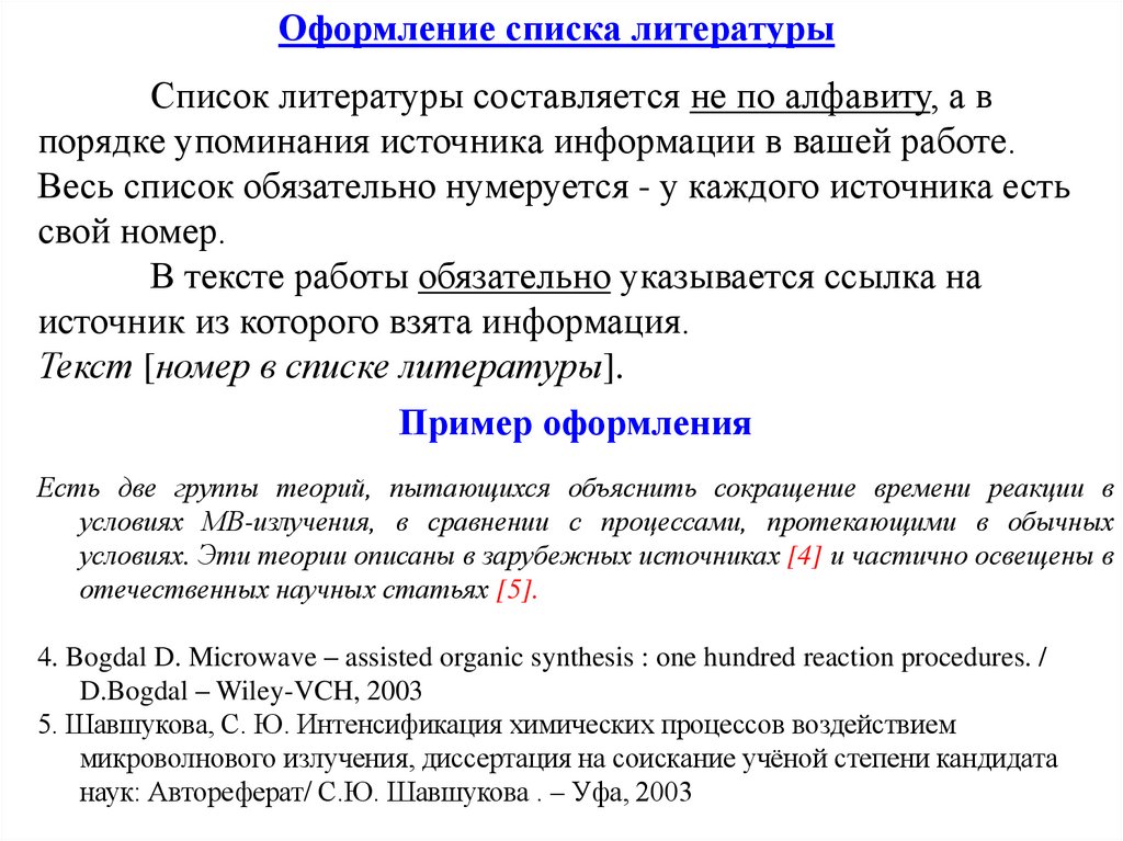 Оформление списка литературыСписок литературы составляется не по алфавиту, а в
