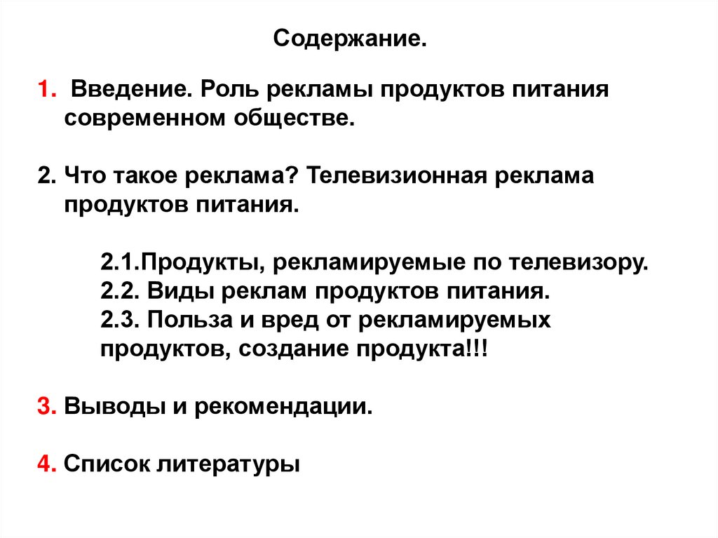 Содержание.1. Введение. Роль рекламы продуктов питания