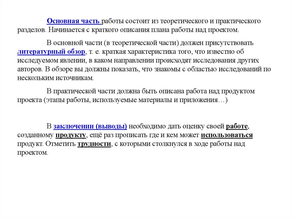 Основная часть работы состоит из теоретического и практическогоразделов. Начинается с краткого описания плана работы над проектом.