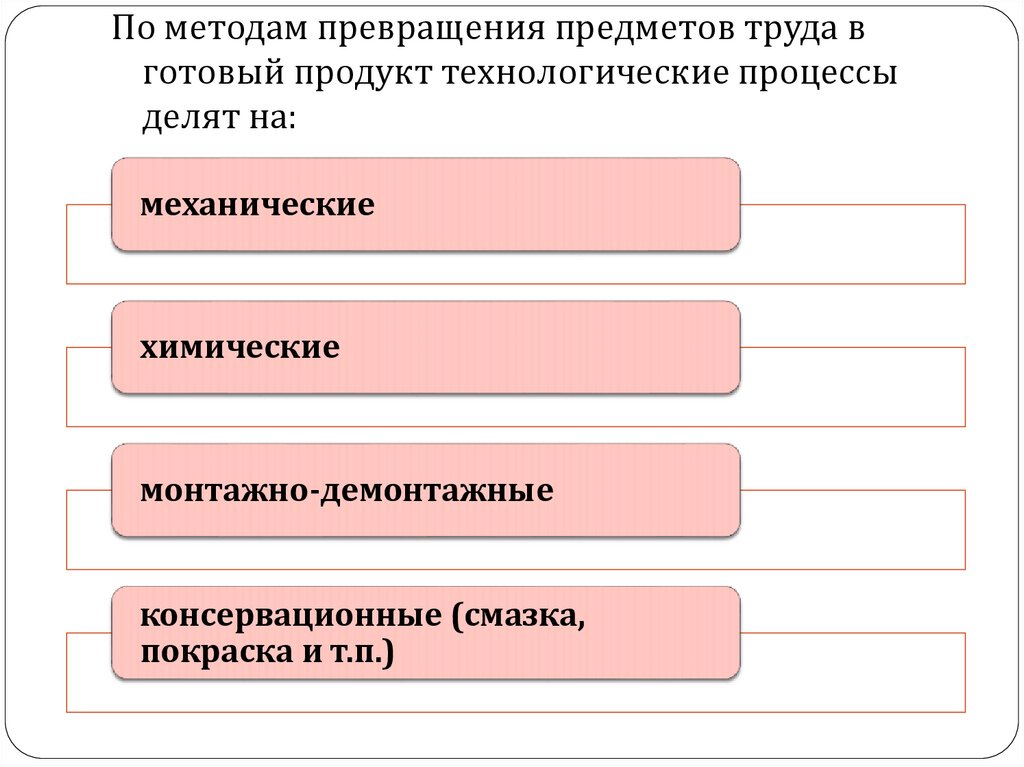 По методам превращения предметов труда вготовый продукт технологические процессы