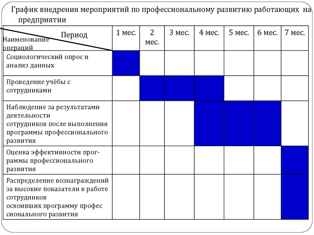 График внедрения мероприятий по профессиональному развитию работающих напредприятии